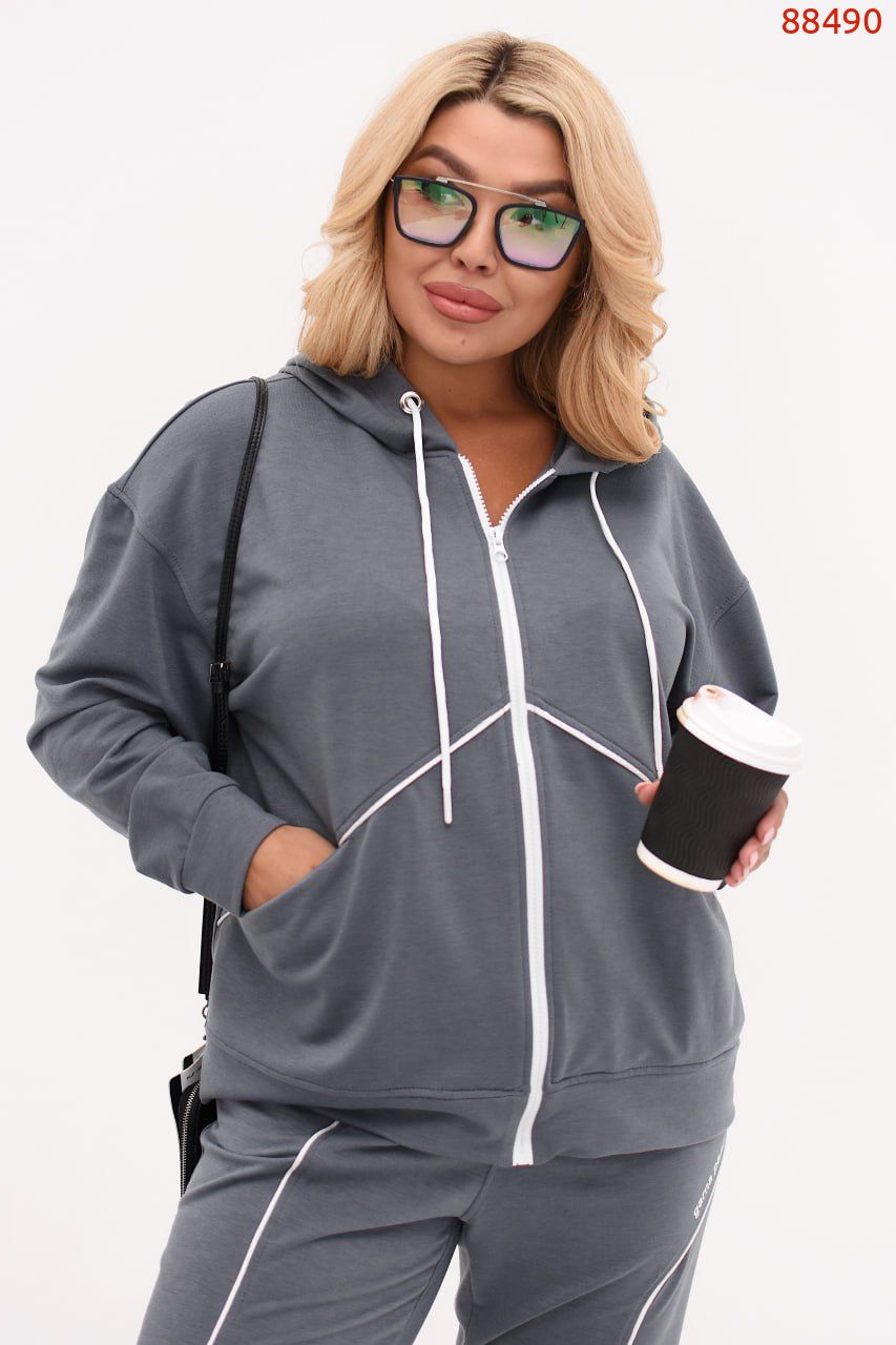Кофта на блискавці з прорізними кишенями – стильна та зручна. Приспущений рукав додає легкості та невимушеності образу.