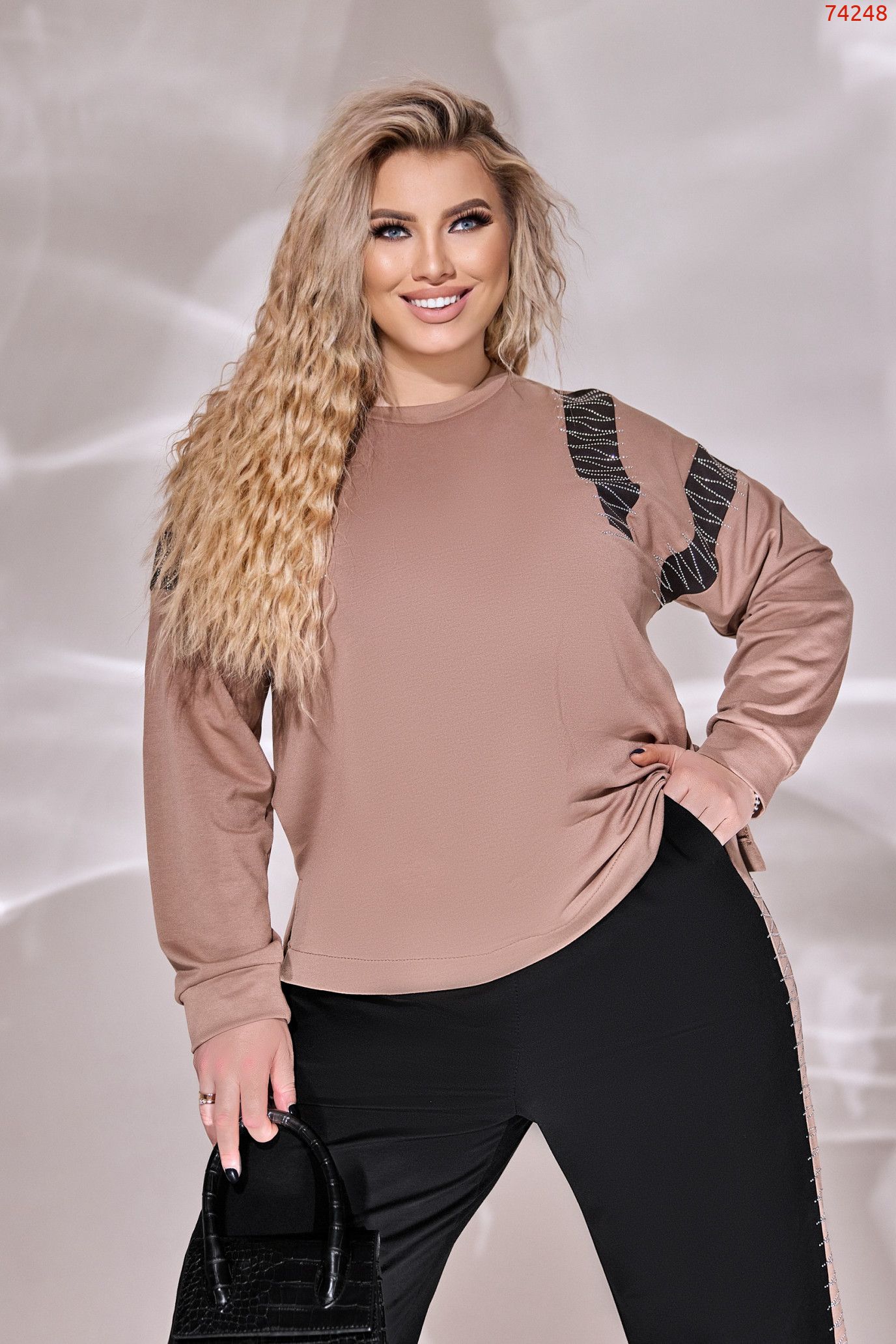Кофтинка вільного покрою, спереді декоровано стразами.