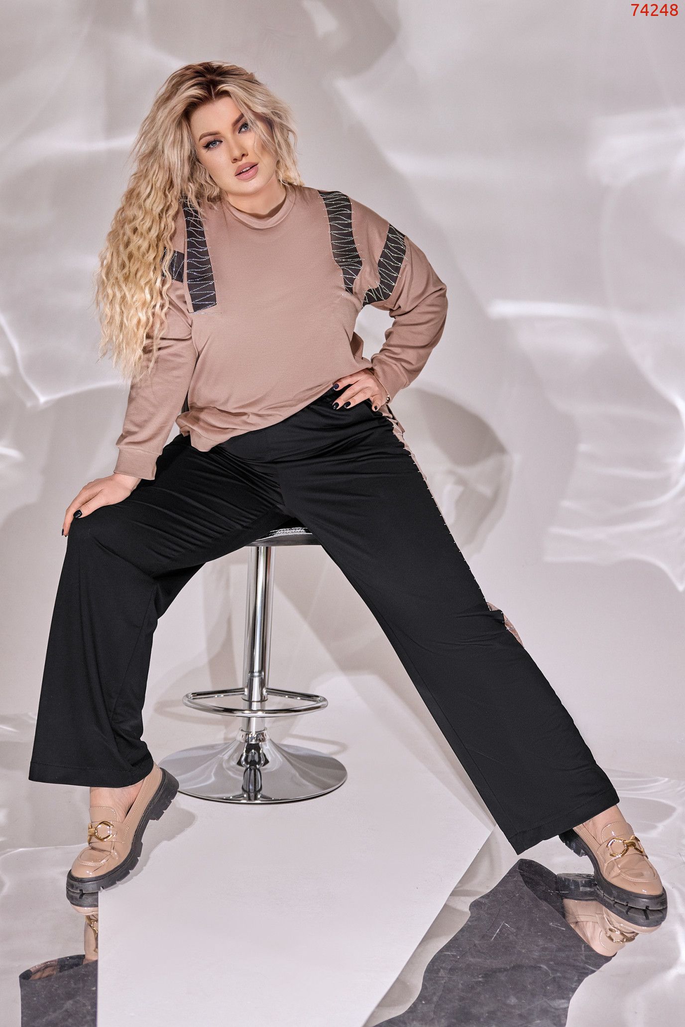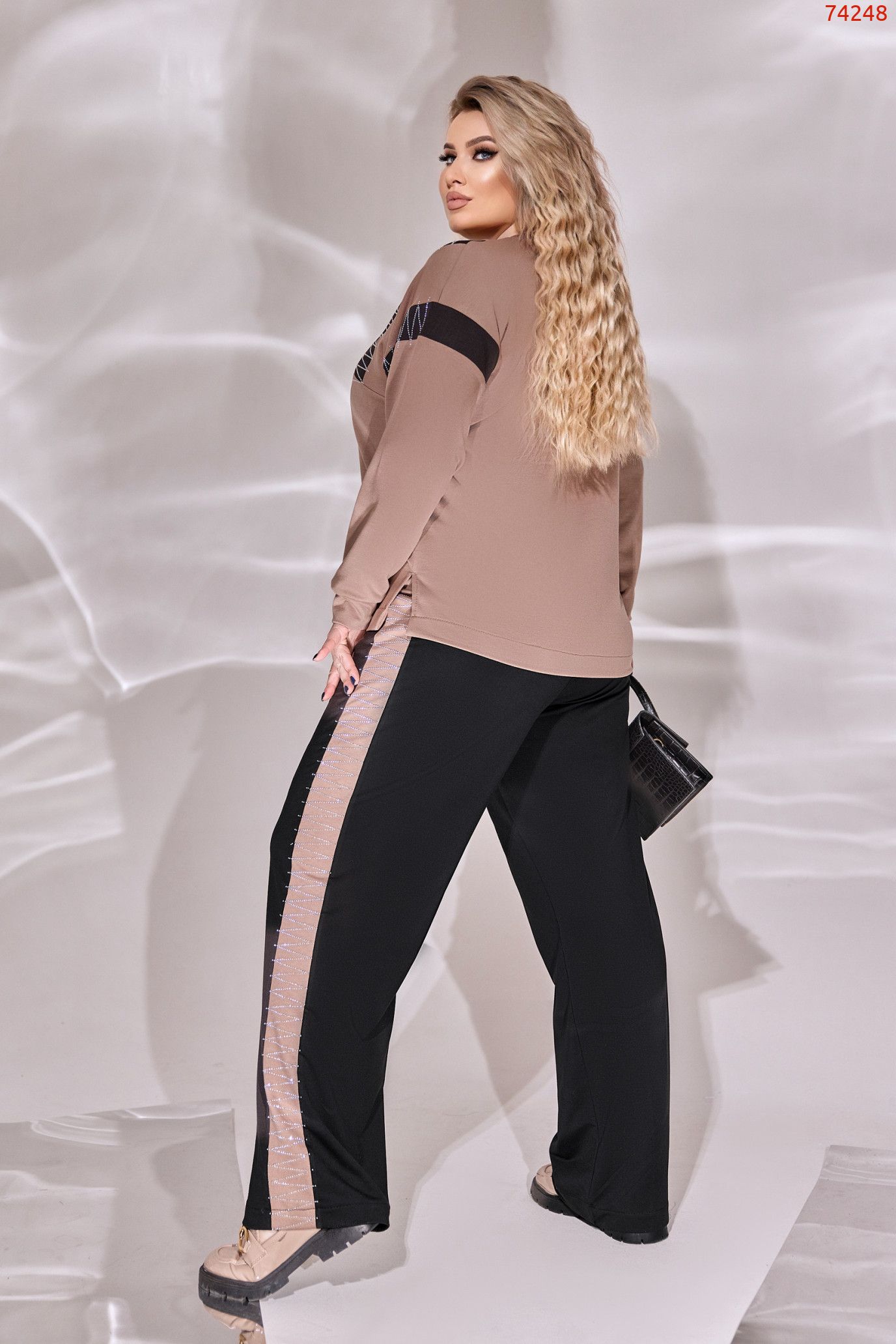 Штани вільного покрою Палаццо, з лампасами по боках- декоровано теж стразами.