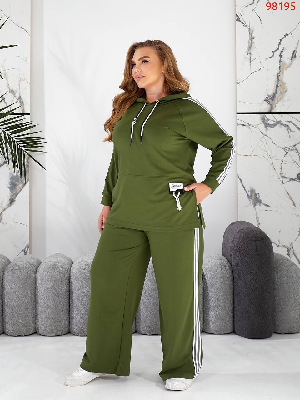 Костюм спорт с штанами паллацо хакі №98195