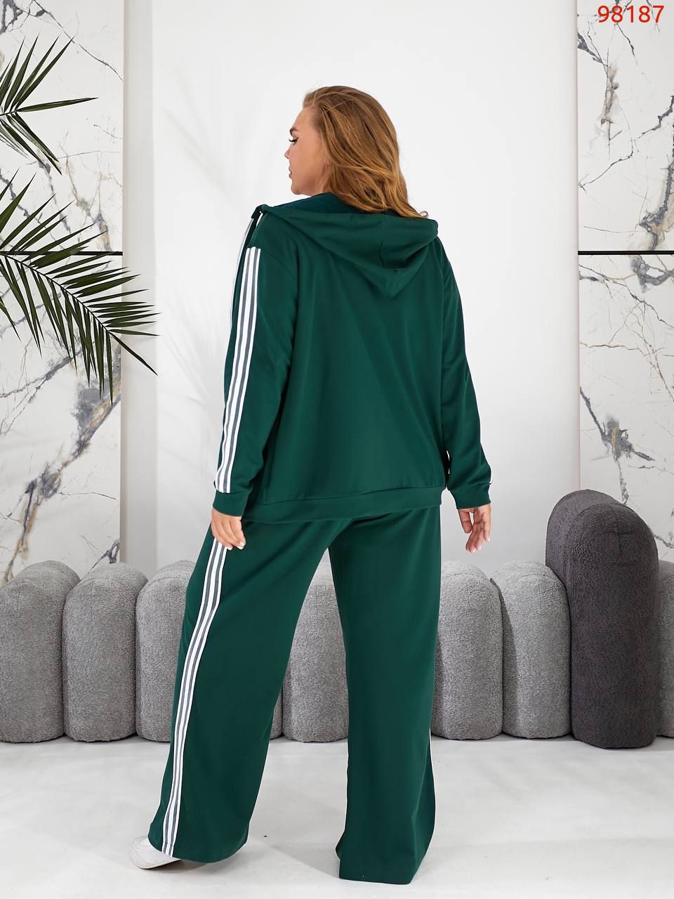 50-52 Довжина кофти – 70 см, довжина рукава – 57 см, Ог – 120см, довжина штанів – 109см, ОБ – 130см, ОТ гумка – 72/112см.