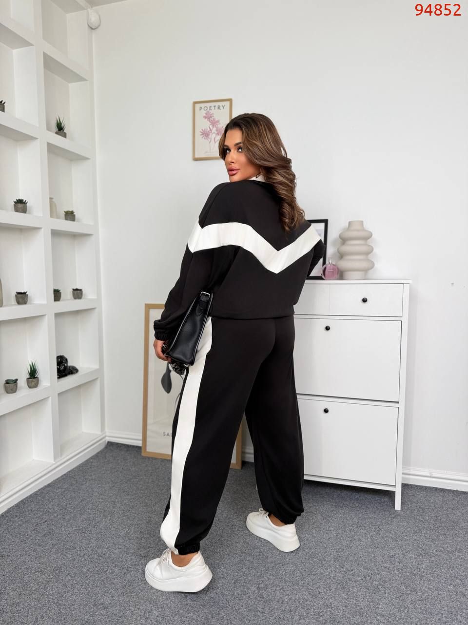 Спортивка по низу регулюється затяжками,що дає змогу носити її в різних варіантах.Джогери з високою посадкою та вільного крою,що робить їх мега комфортними.