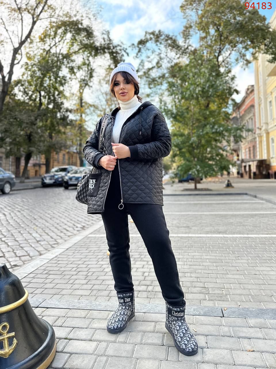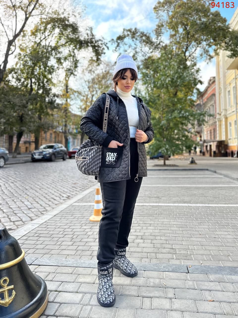 58-60 Довжина кофти перед – 74 см, довжина кофти ззаду-84 см, довжина рукава т горла – 66 см, Ог-142 см, довжина штанів-103 см, ОБ-146 см, гумка-130 см.