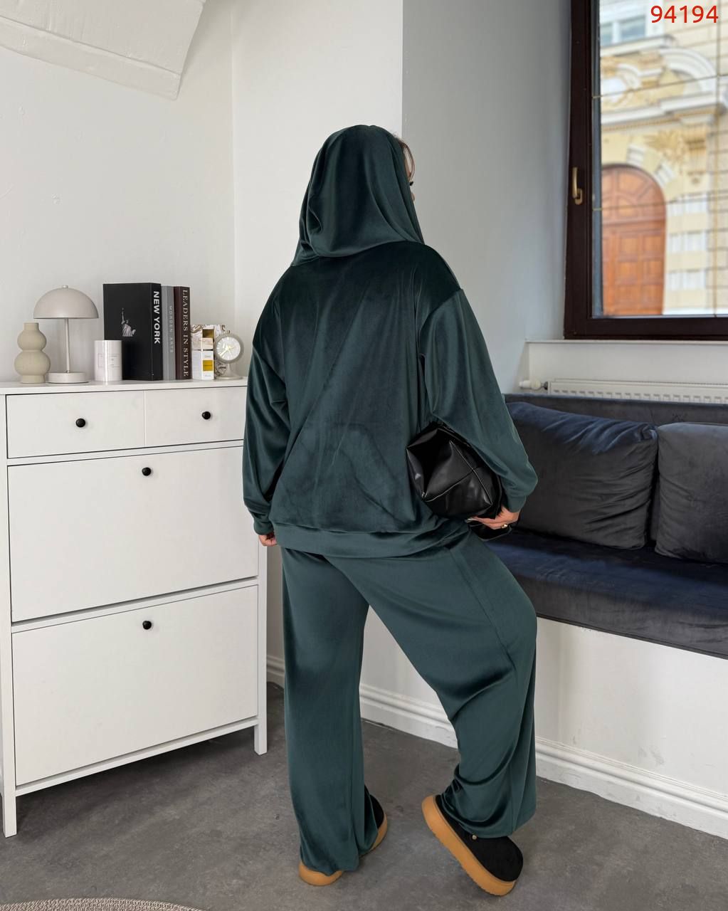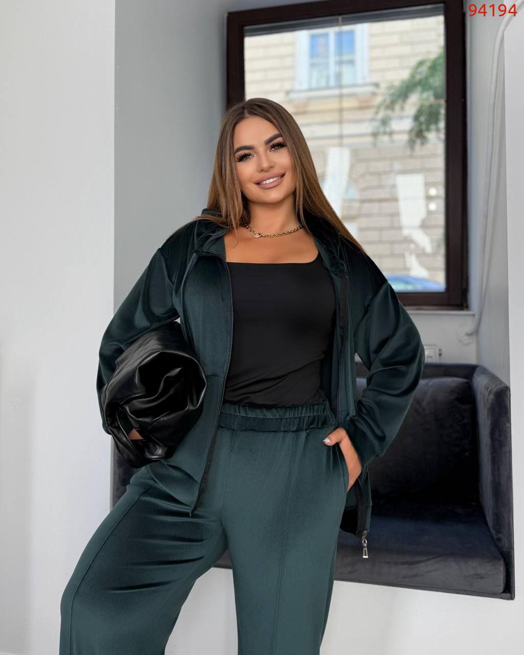 Довжина кофти 65 см. Довжина штанів по зовнішньому/внутрішньому шву 103/76 см. Велюр добре тягнеться.
