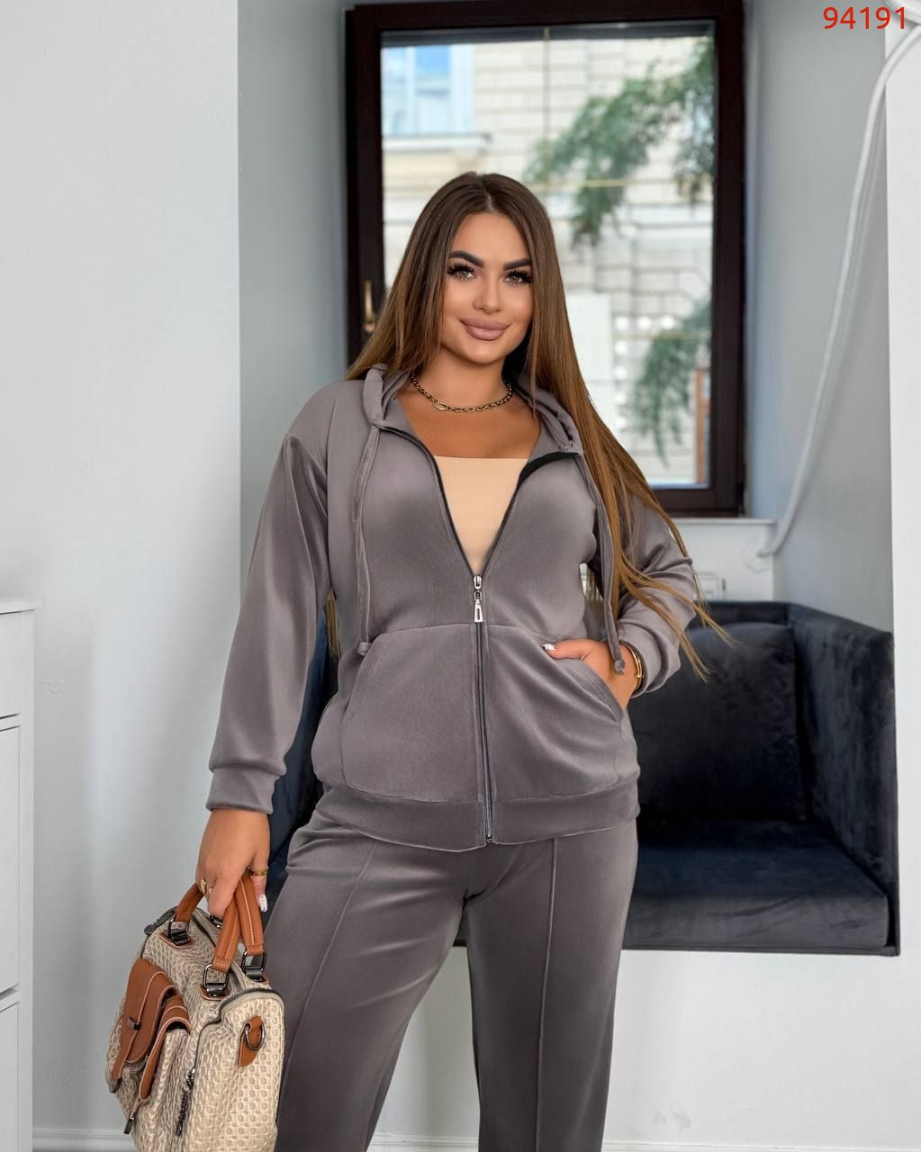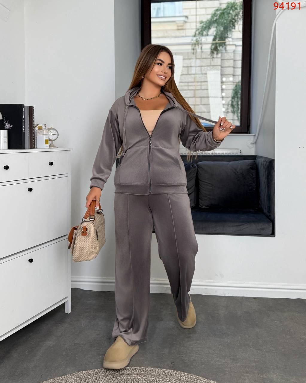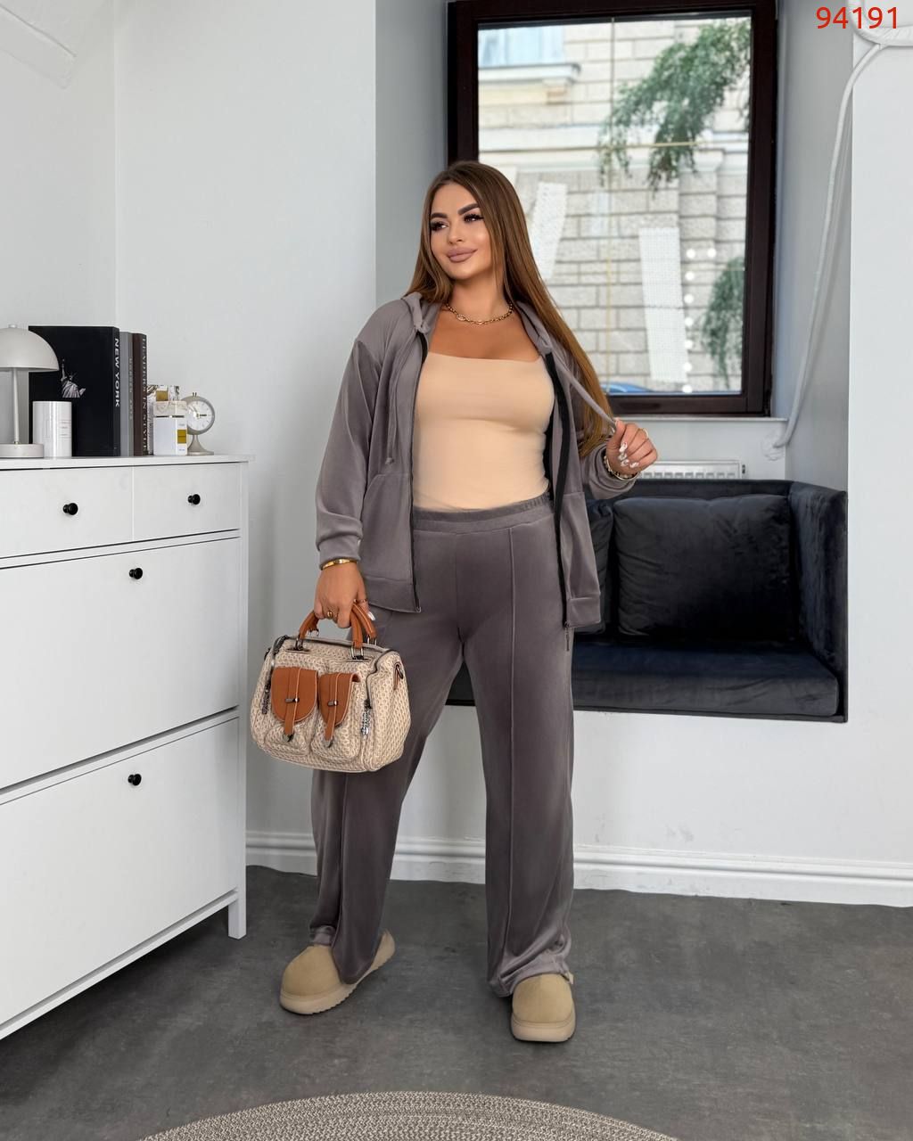 Довжина кофти 65 см. Довжина штанів по зовнішньому/внутрішньому шву 103/76 см. Велюр добре тягнеться.