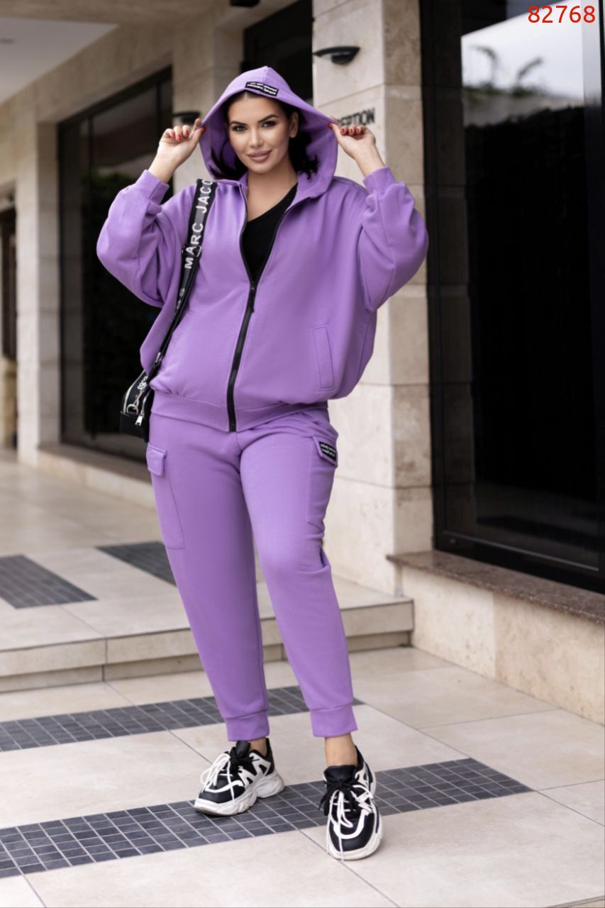 Бомбер вільній с капюшоном та карманами , джогері на манжеті з накладними кишенями з клапанам та кишені по боковому шву.