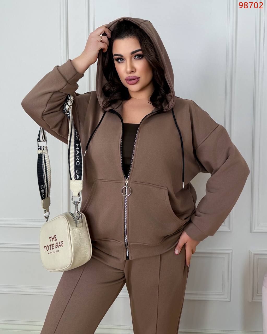 Спортивний костюм на змійці із петлі Хб Турція ( Кофта на змійці «худі» з підвійним капюшоном. Штани прямі, трохи розширені донизу, з кишенями у бокових швах, з високою посадкою на талії, пояс на гумці.