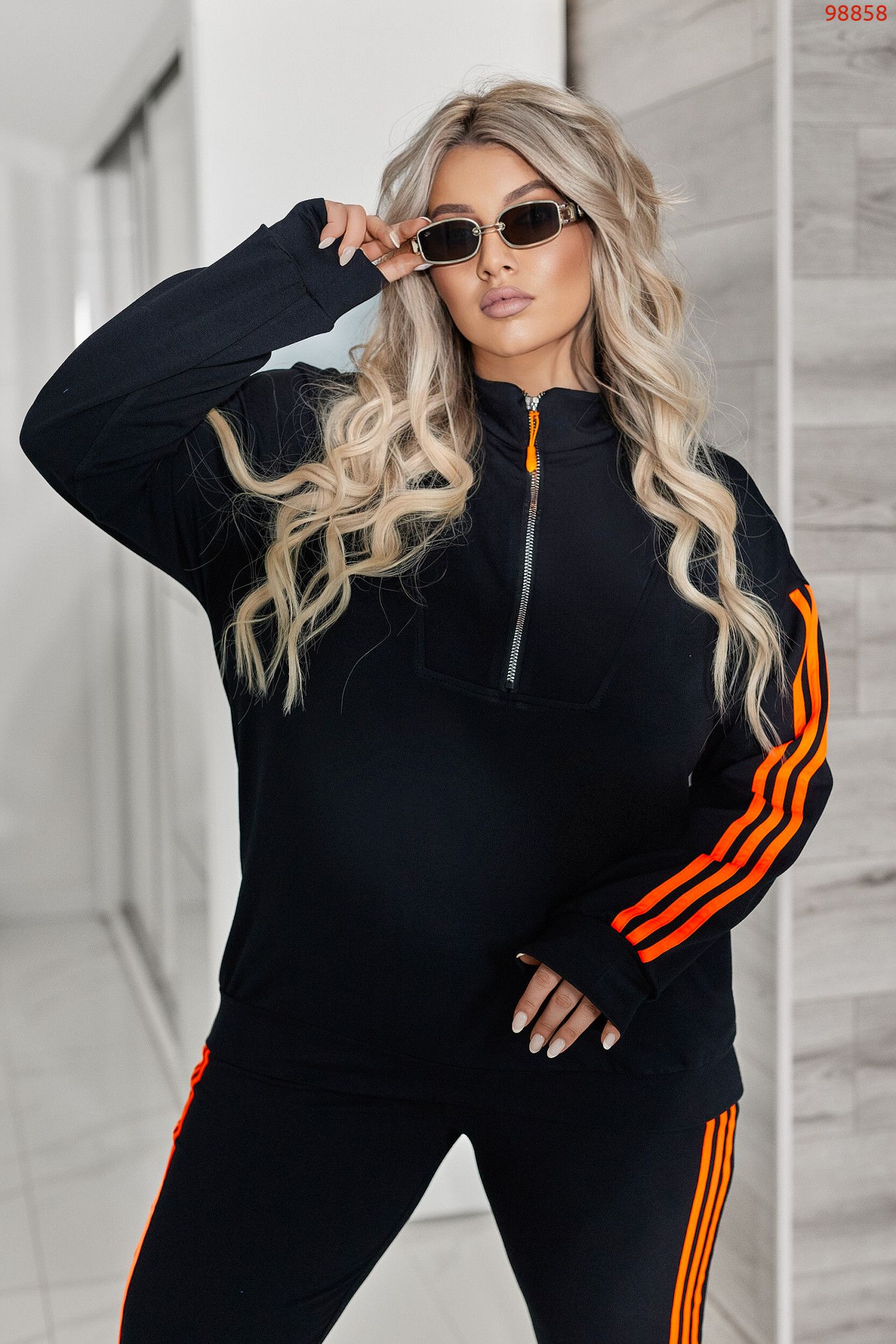 Кофтинка вільного покрою зі стійкою комірцем та блискавкою— зручна та сучасна. Модель декорована лампасами, які підкреслюють спортивний та модний стиль.