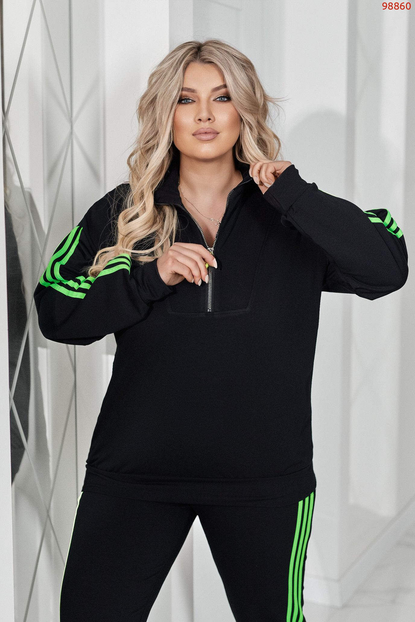 Кофтинка вільного покрою зі стійкою комірцем та блискавкою— зручна та сучасна. Модель декорована лампасами, які підкреслюють спортивний та модний стиль.