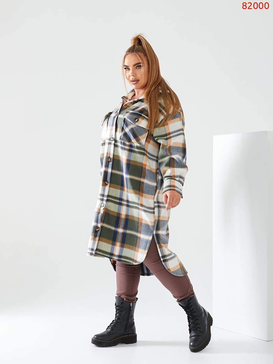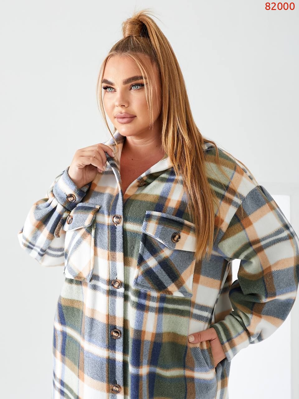 Трендова жіноча сорочка у стилі оверсайз, подовженого крою, внизу із закругленими розрізами з боків.