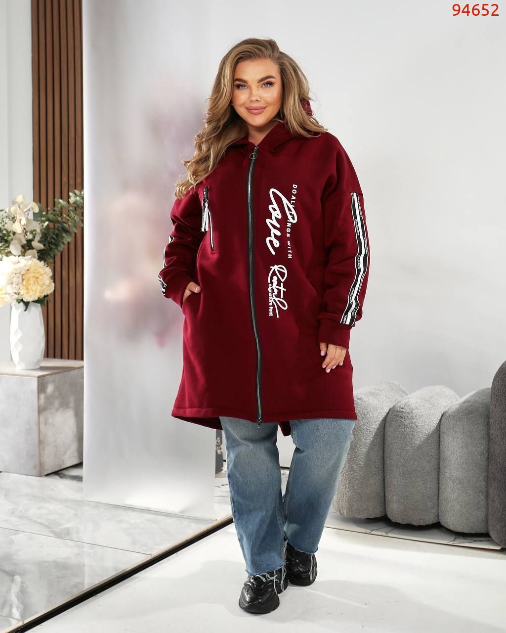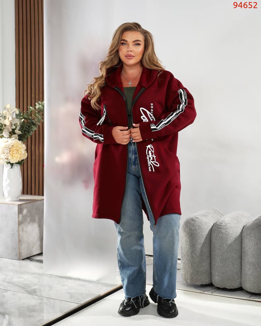 Модний подовжений фасон на блискавці з капюшоном – ідеальний для прохолодних днів