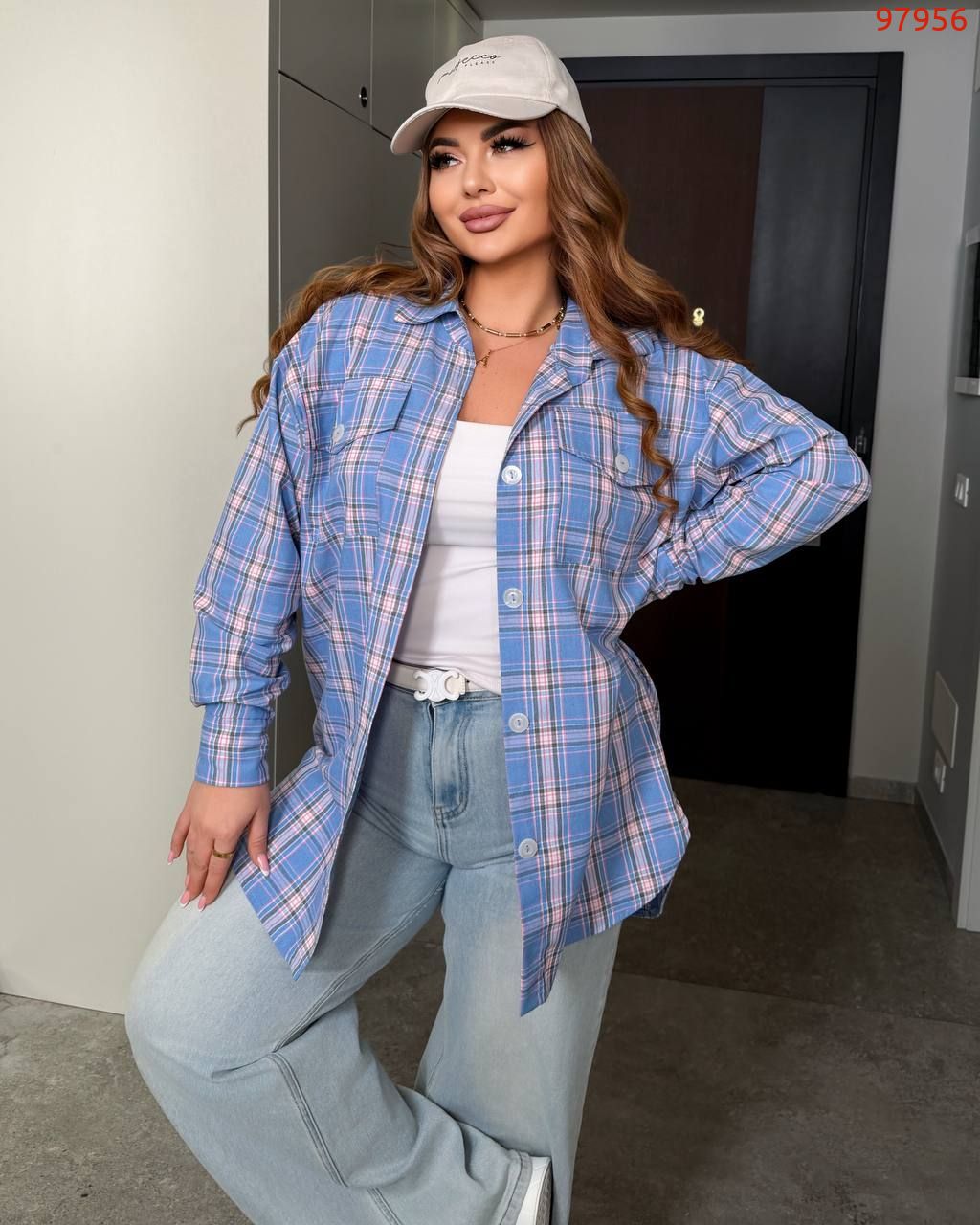 Комфортна універсальна сорочка з кишенями на гудзиках, з розрізами з боків. Позаду трохи довше.