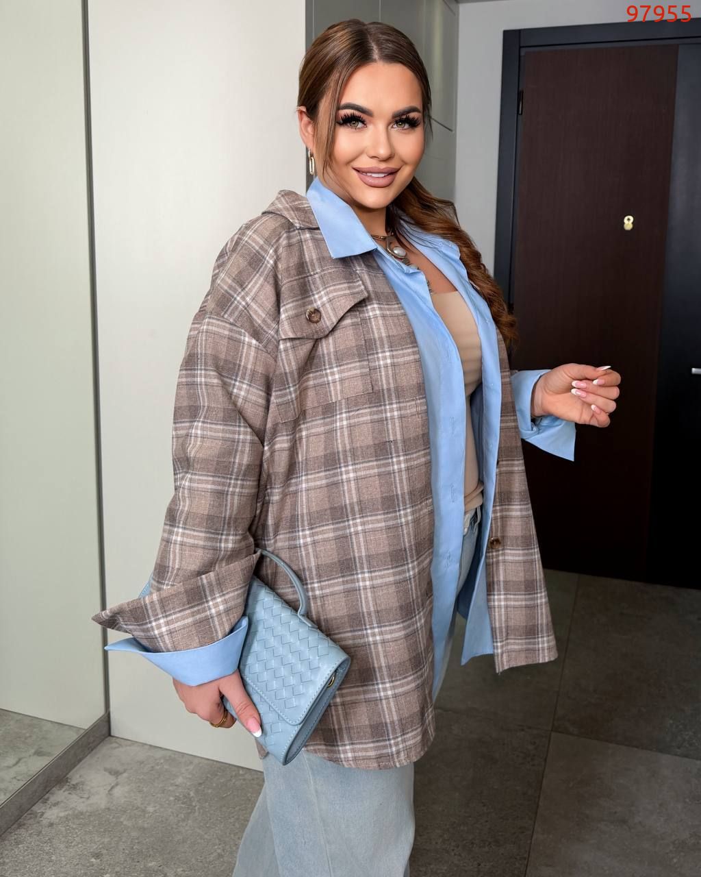 Стильна сорочка в клітинку шоколад №98783