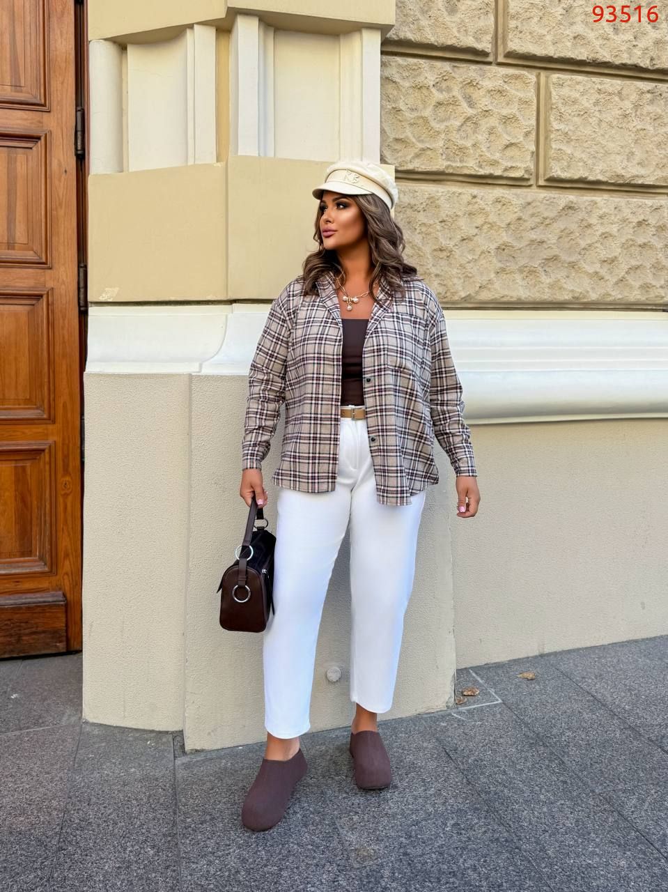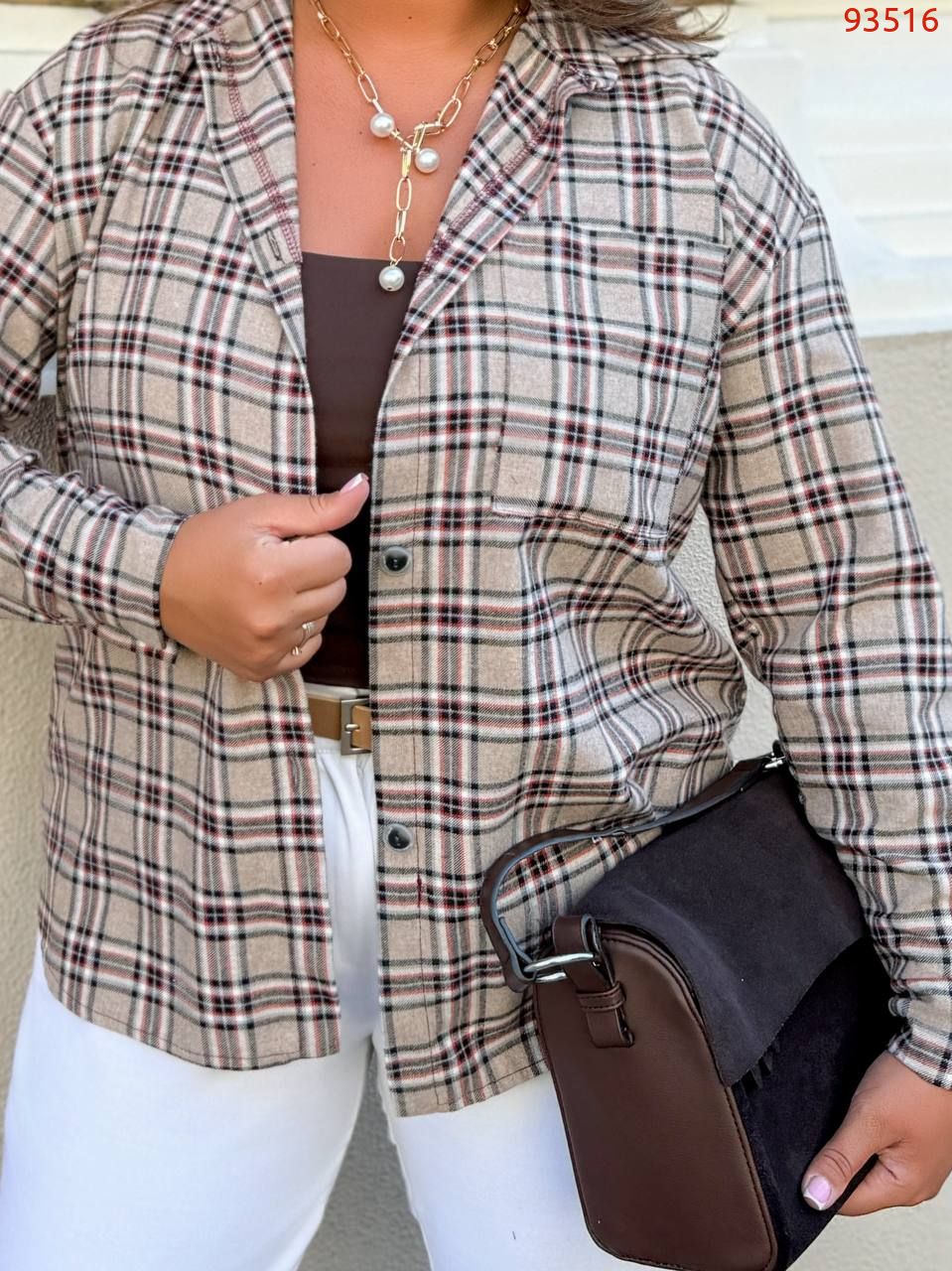 Стильна сорочка в клітинку шоколад №98783