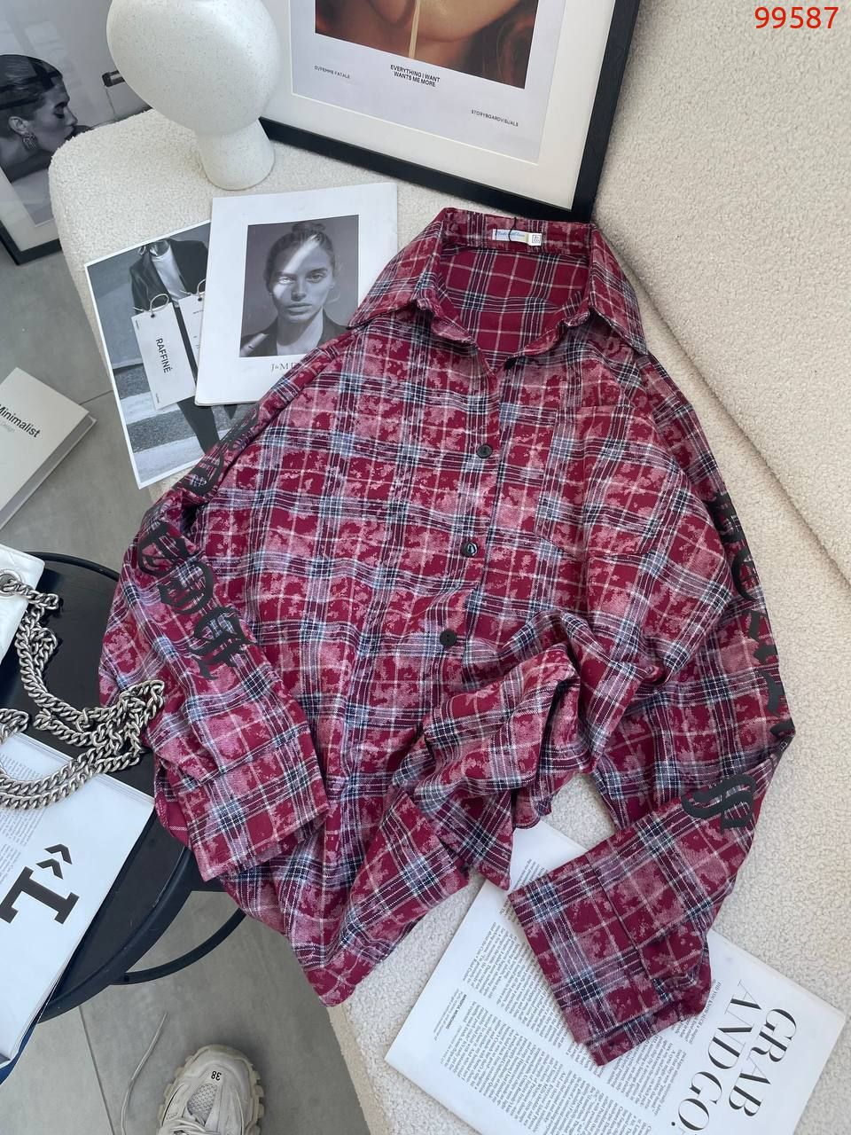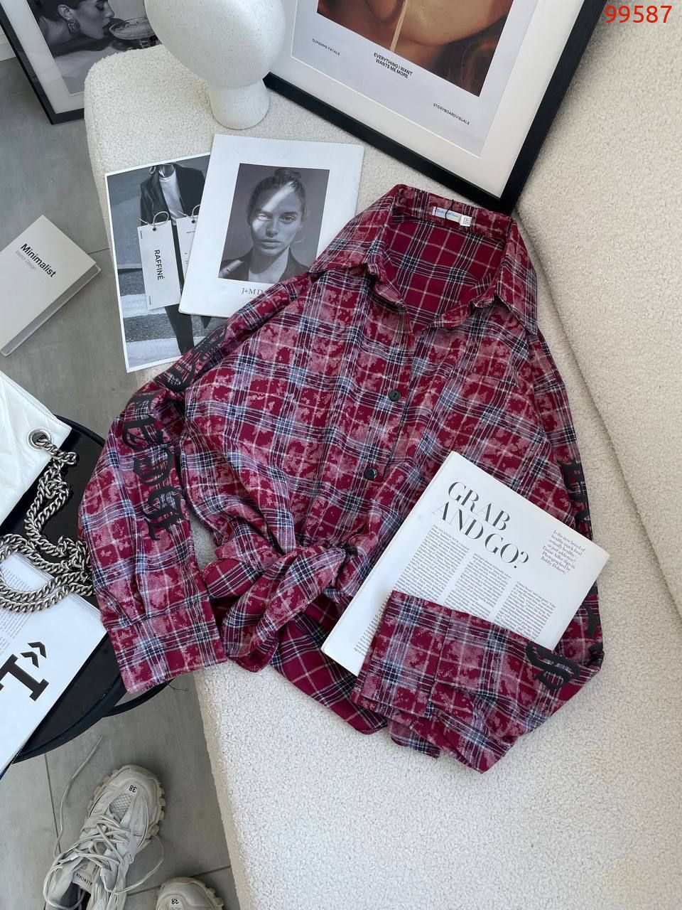 Сорочка в клітинку бордо №99587