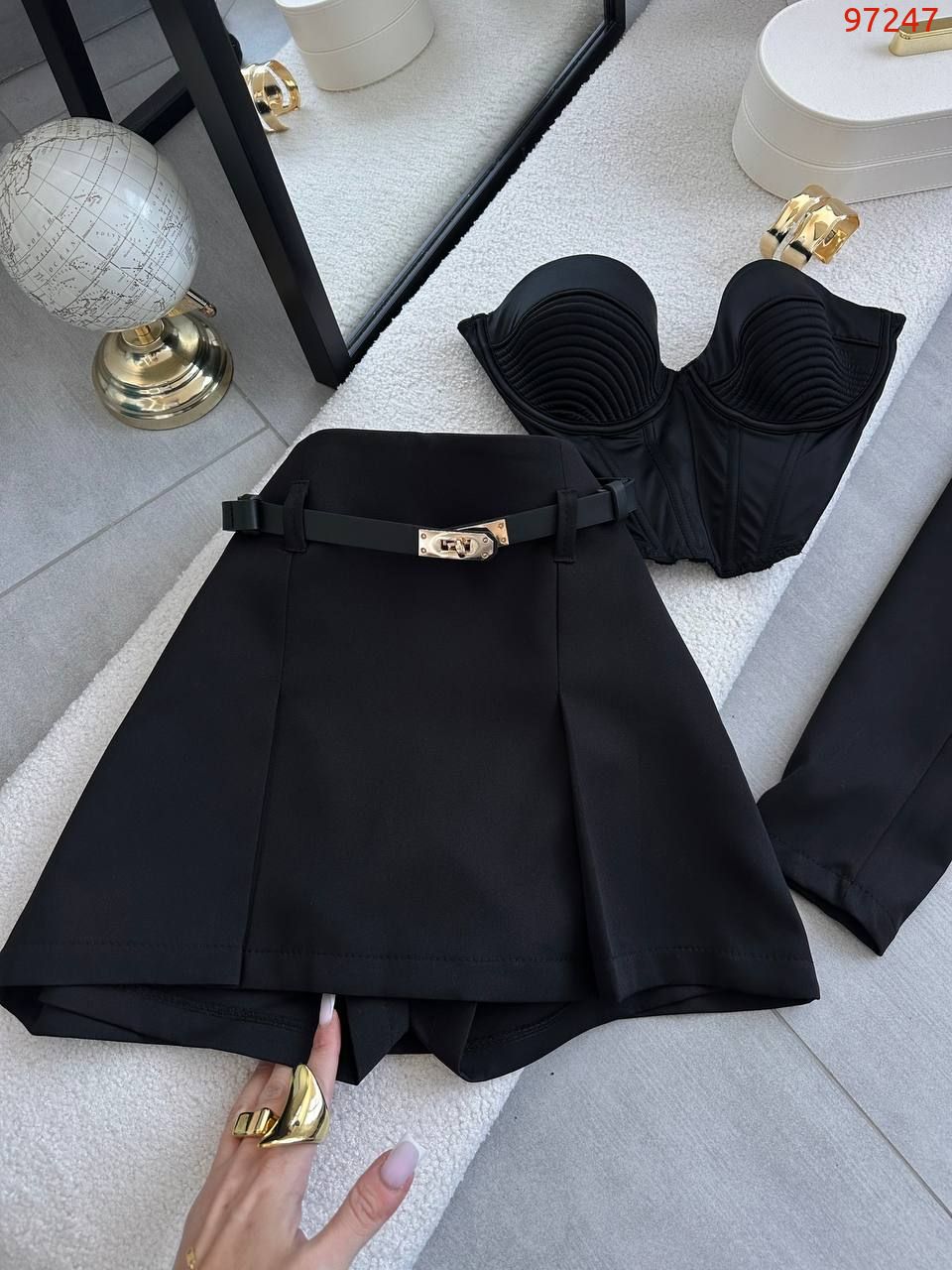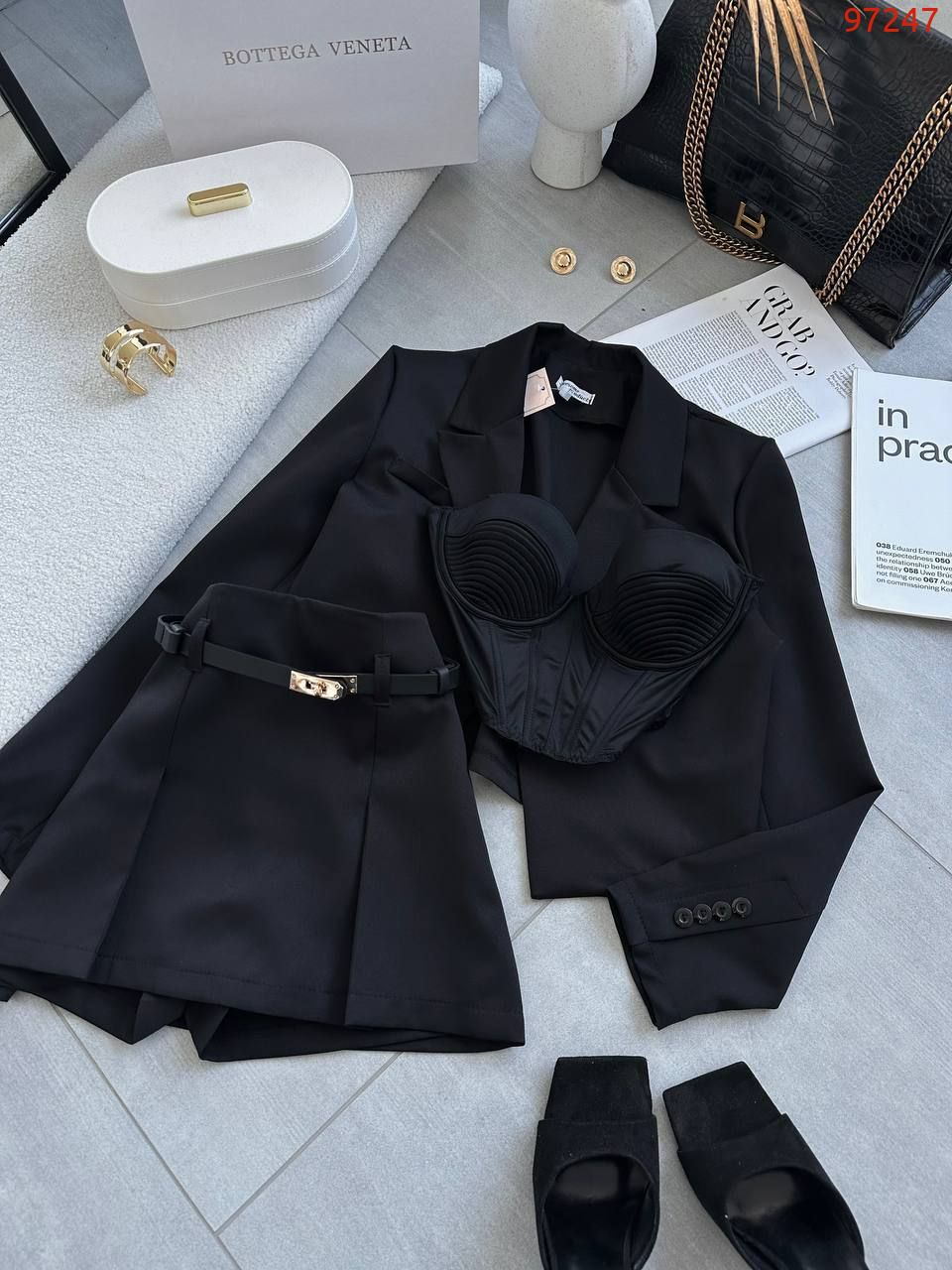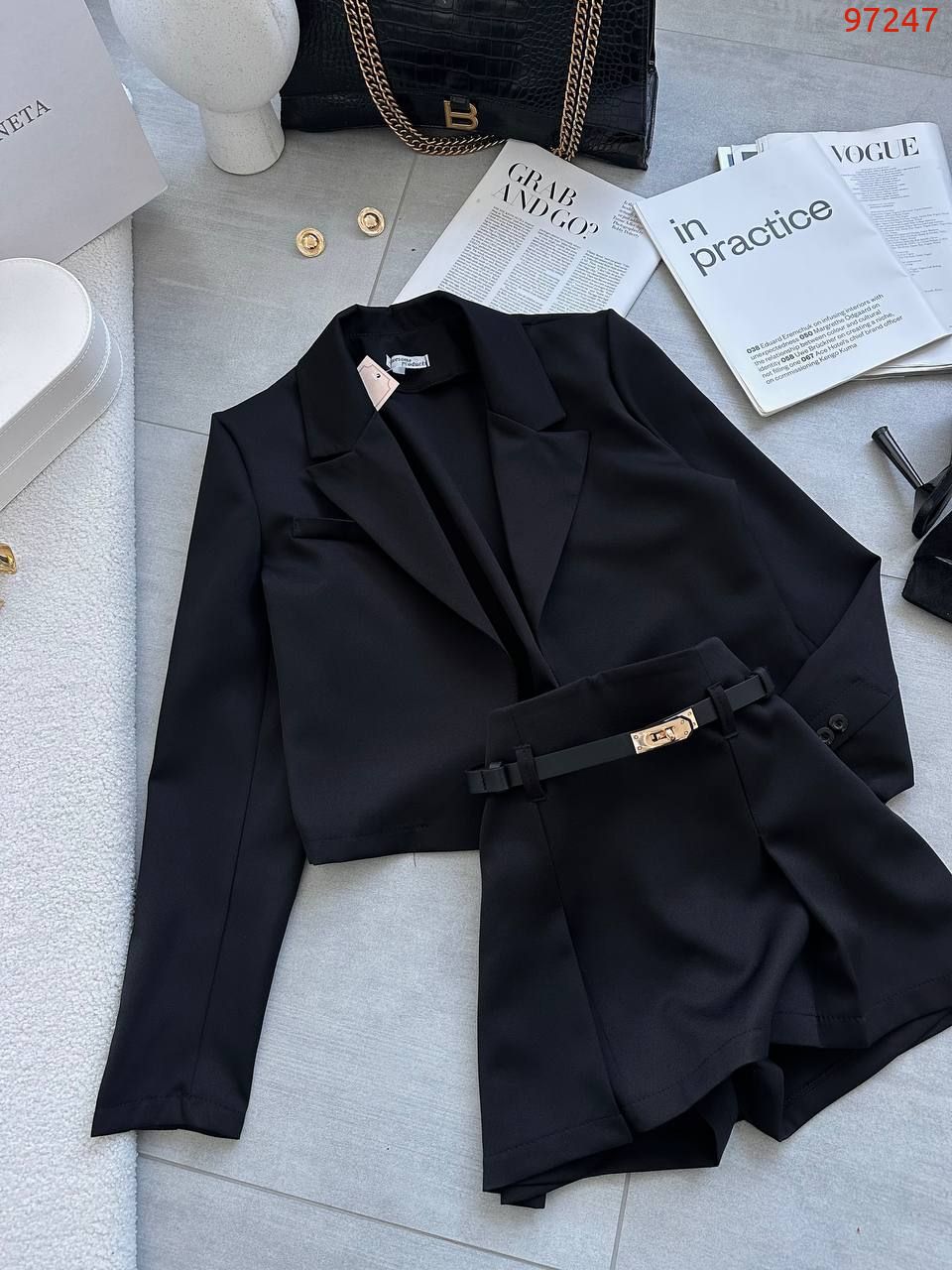 Наш ультрамодний дует з вкороченого піджака і спідниці-шорт, що ідеально сидять