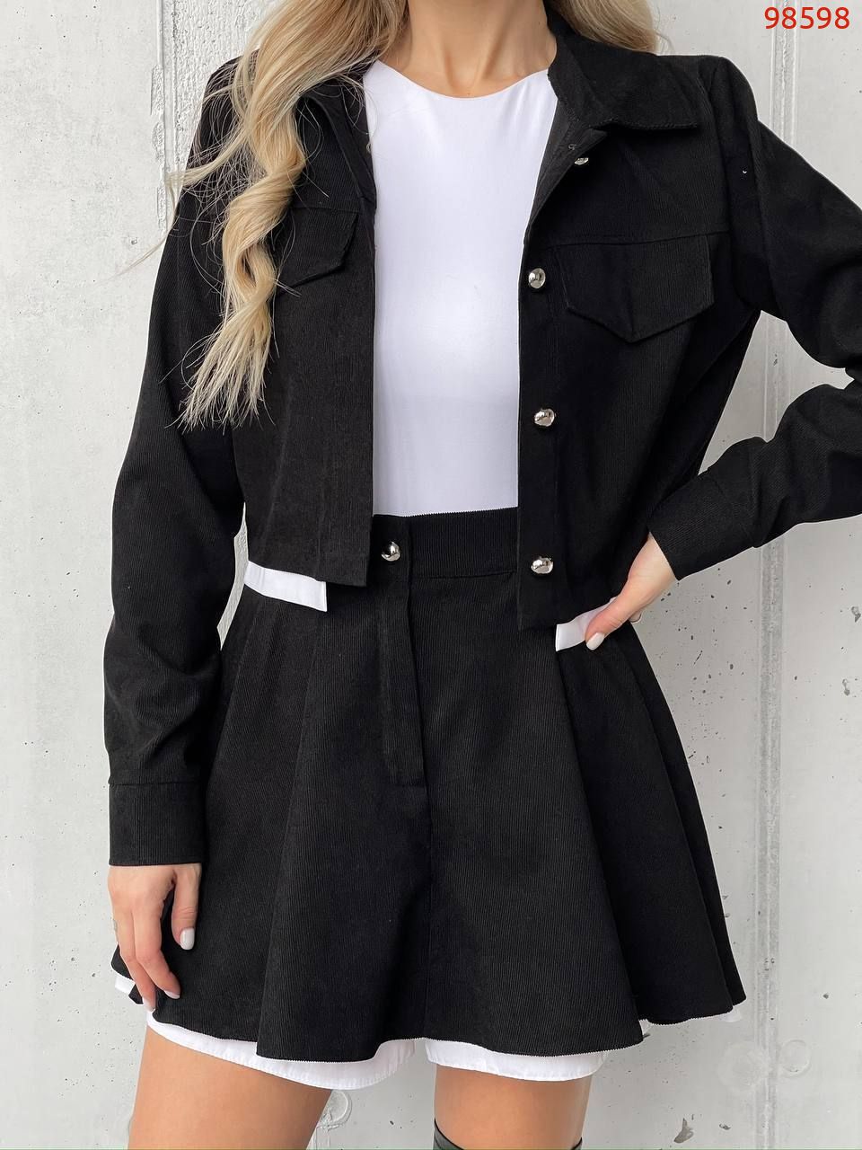 Костюм (жакет та спідниця-шорти) чорний №98598