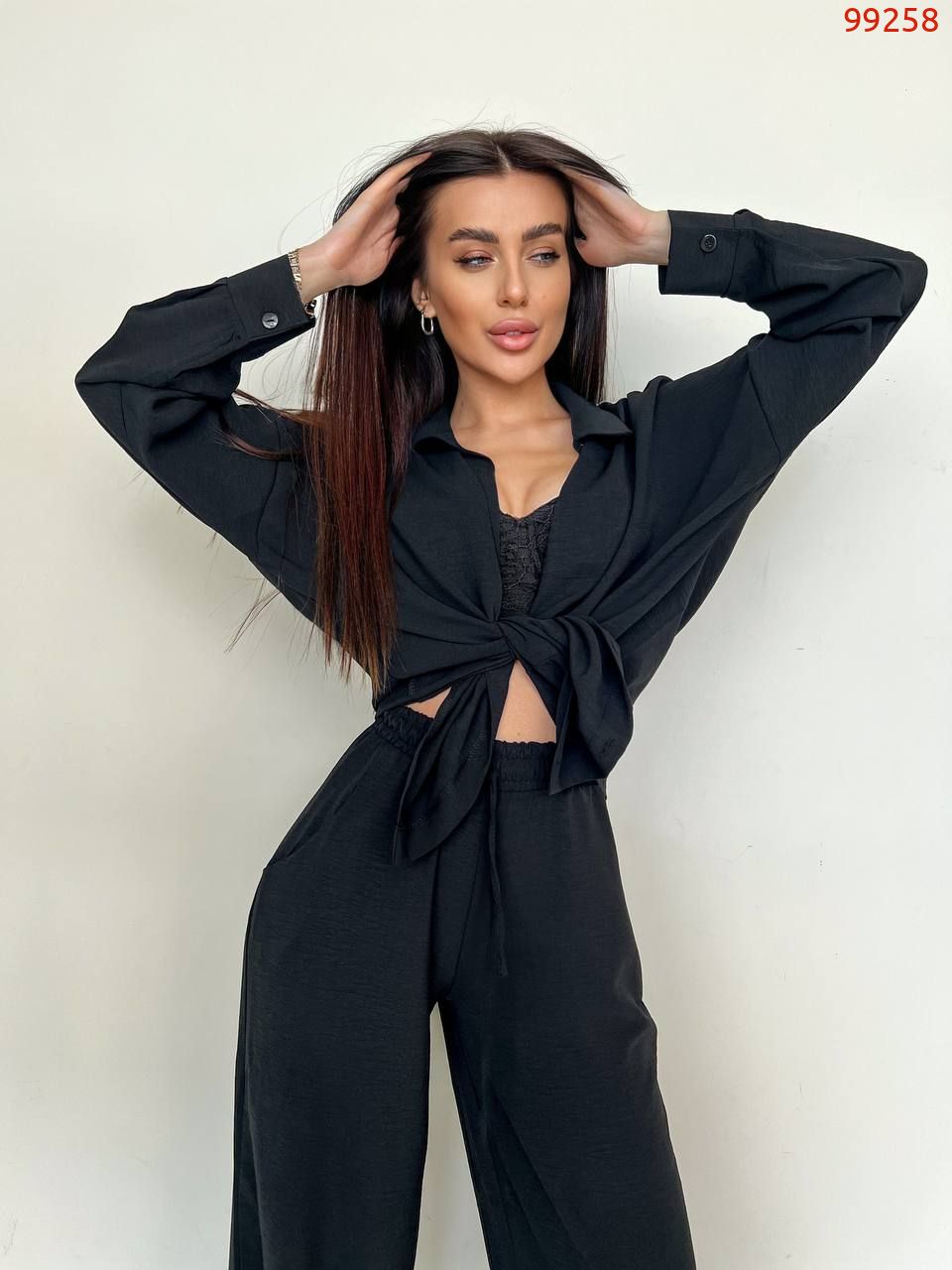 Хіт продажу цього сезону - стильні костюмчики з легкої та приємної тканини, дуже зручний та практичний, сорочка на ґудзиках, штани кльош на високій посадці