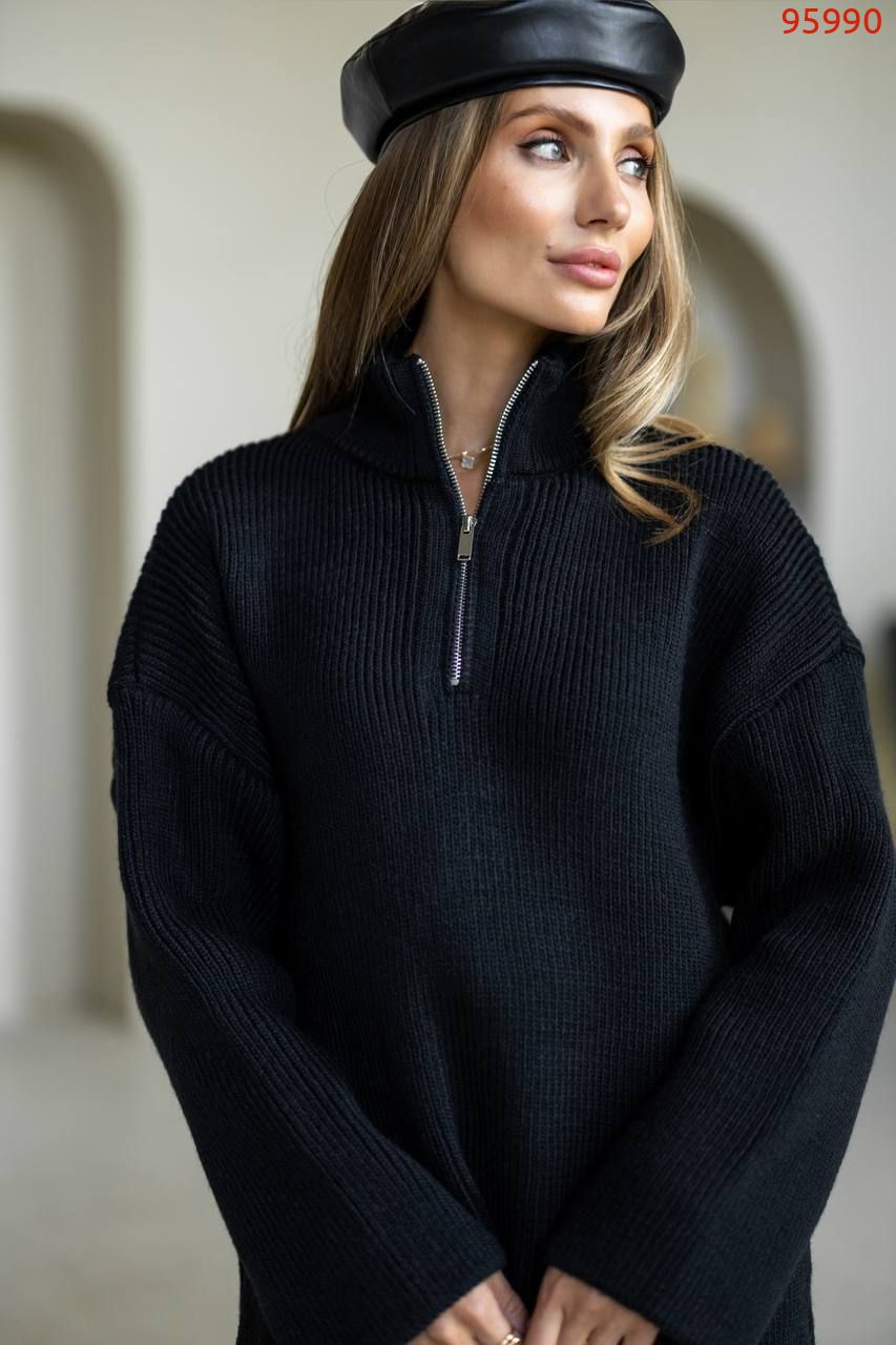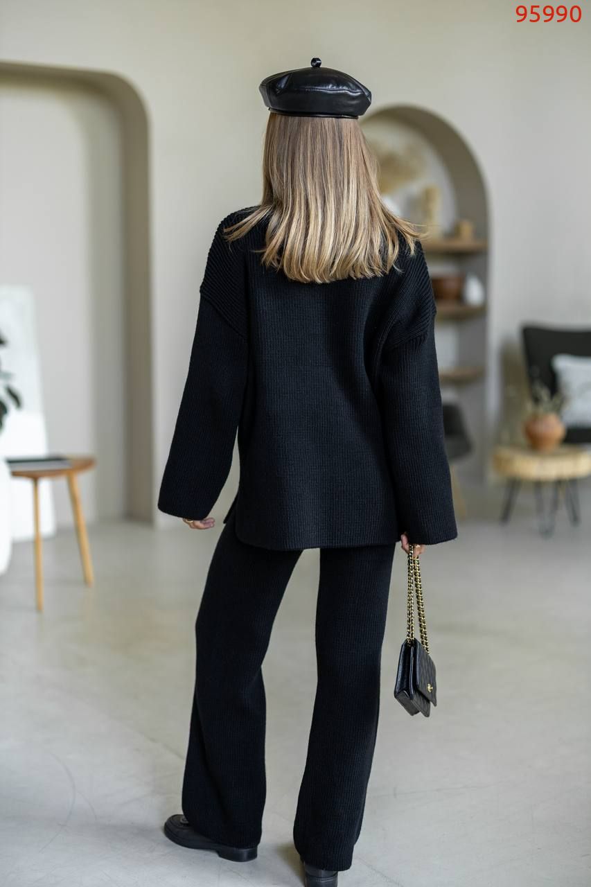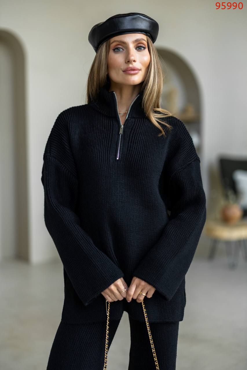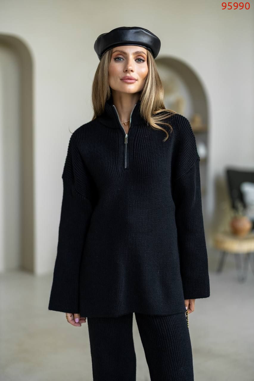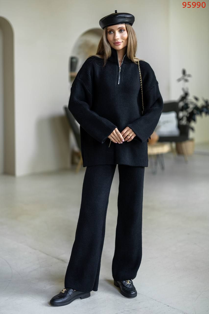 Затишний костюм із м'якої щільної пряжі з ідеальною посадкою. Вільний светр на блискавці та прямі штани створюють стильний та розслаблений силует. Підходить для міста, подорожей та відпочинку.