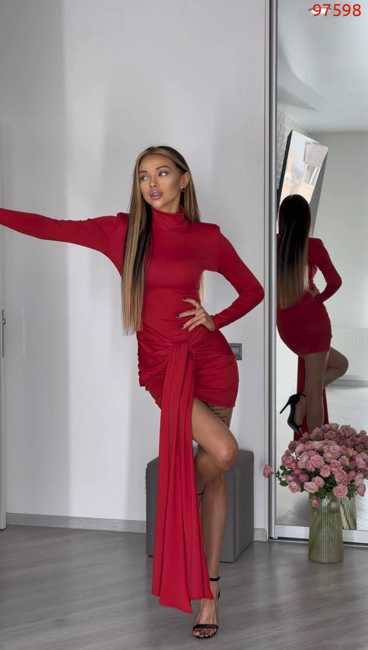 Елегантна сукня в довжині міні в приголомшливих модних відтінках цього сезону. Крій сукні підкреслює фігуру, а акцентне драпірування створює витончену лінію талії, витягуючи силует та притягуючи погляди.
