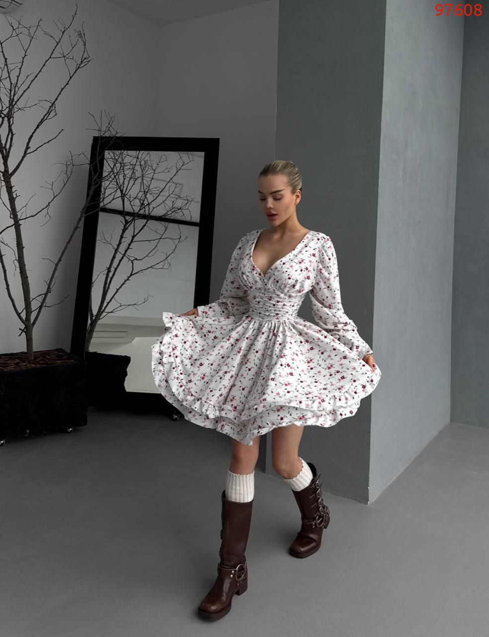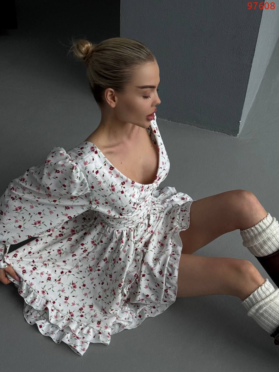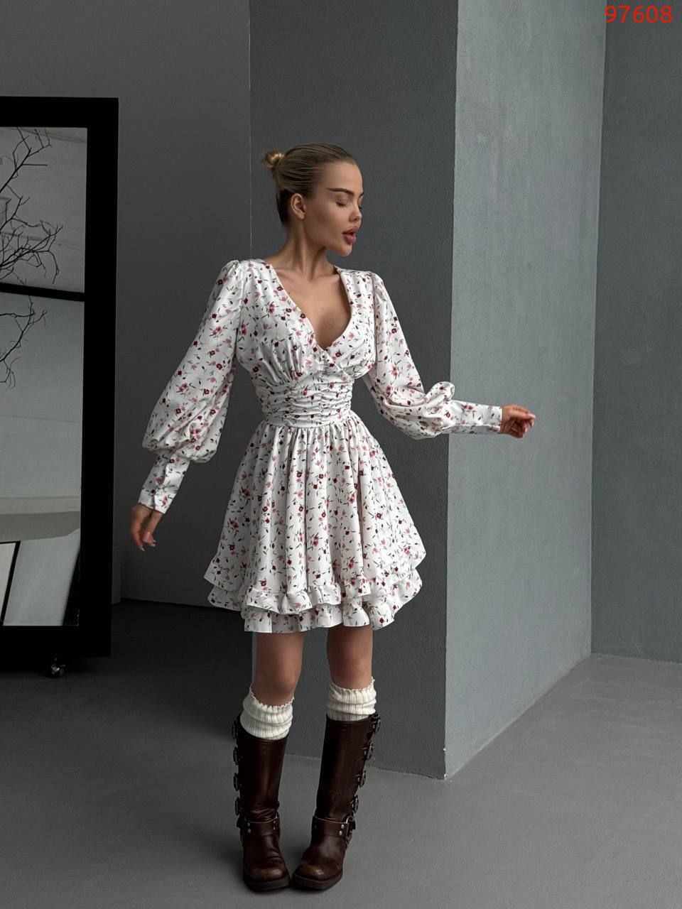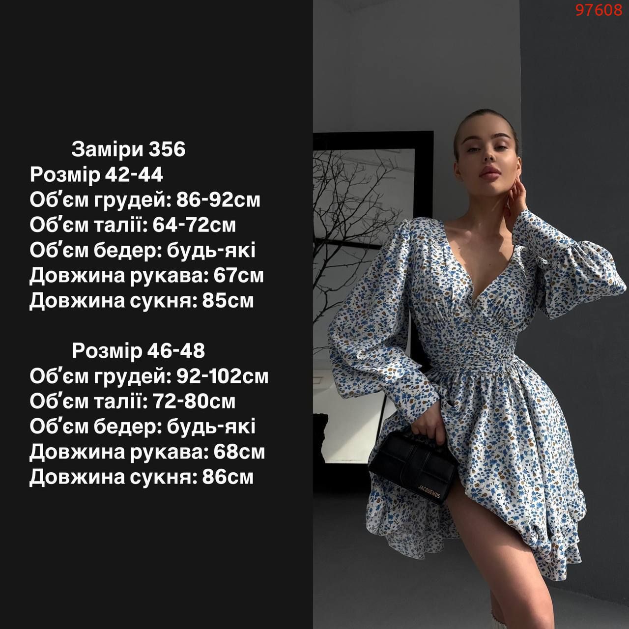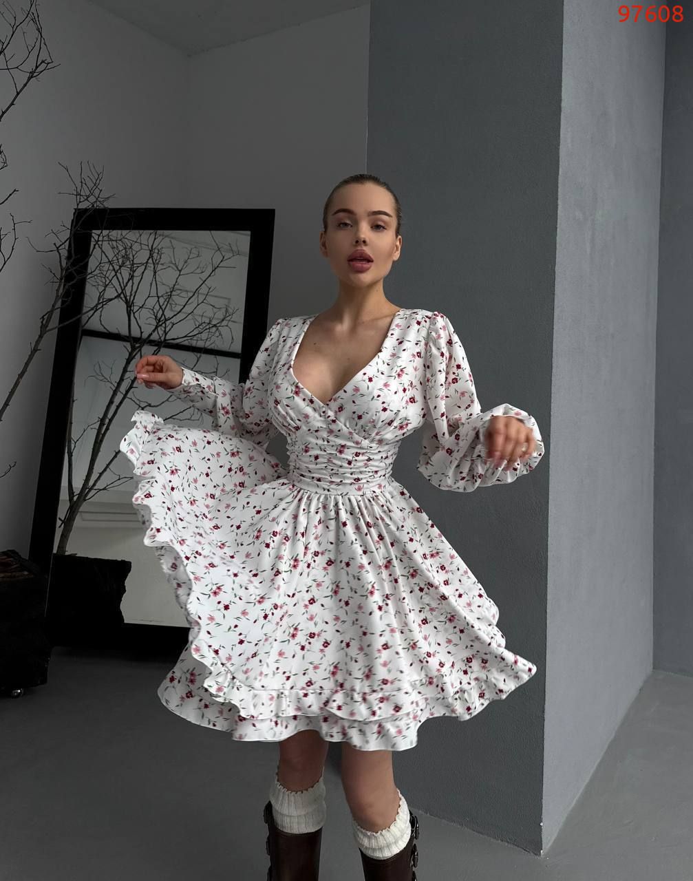 Легка тканина, пишні рукава, спідниця подвійний сонце кльош з рюшами. Ідеальний вибір для прогулянок та особливих моментів