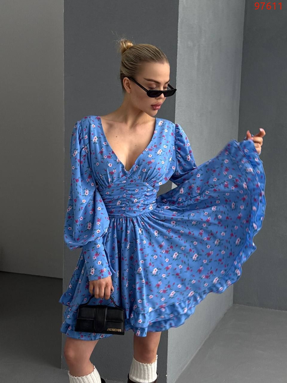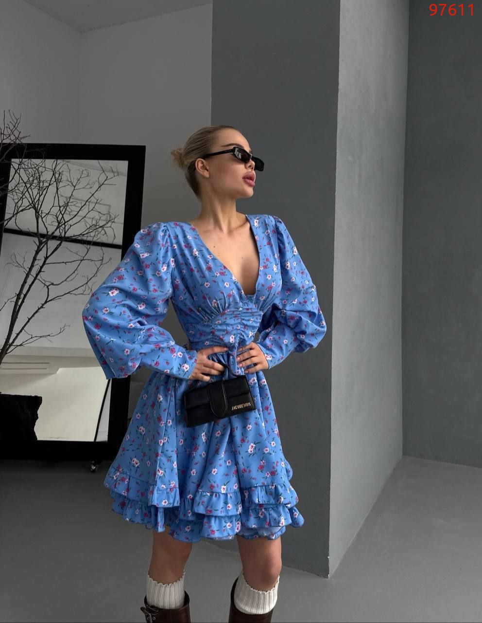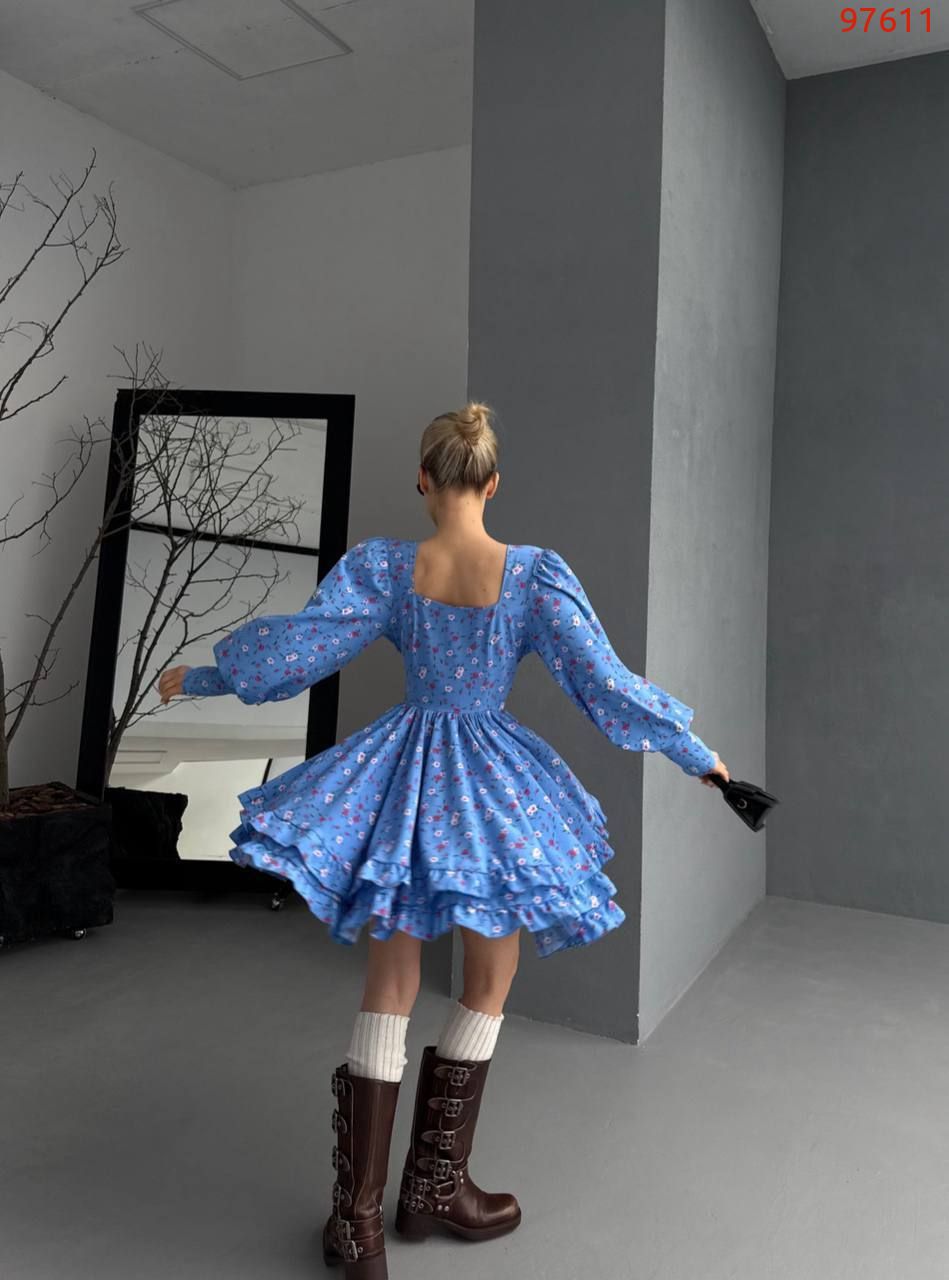 Легка тканина, пишні рукава, спідниця подвійний сонце кльош з рюшами. Ідеальний вибір для прогулянок та особливих моментів