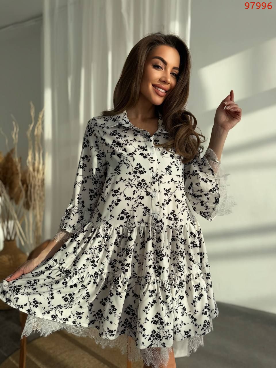 Ніжні мережива, рюші, квітковий принт, роблять цю сукню неймовірно жіночою, в цій сукні ваш настрій буде на всі 100% прекрасним та легким