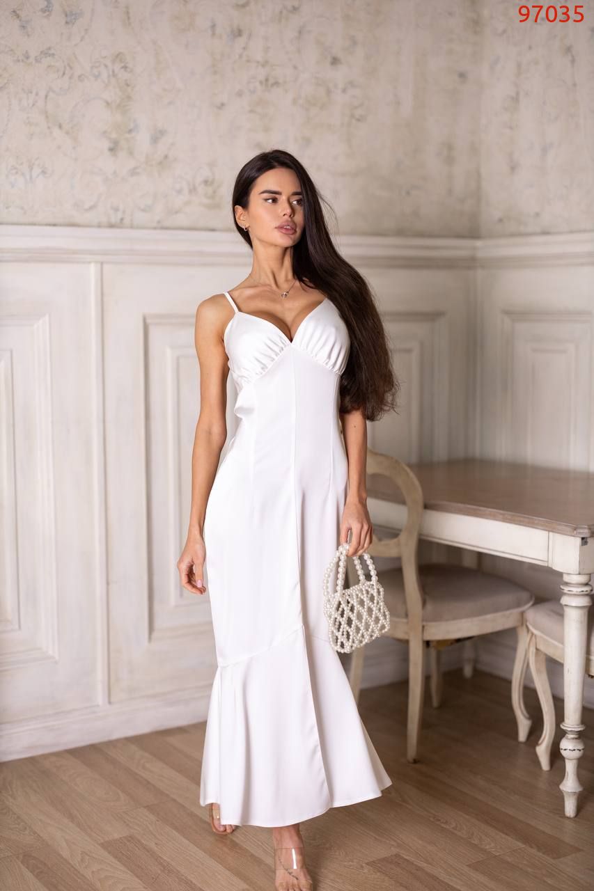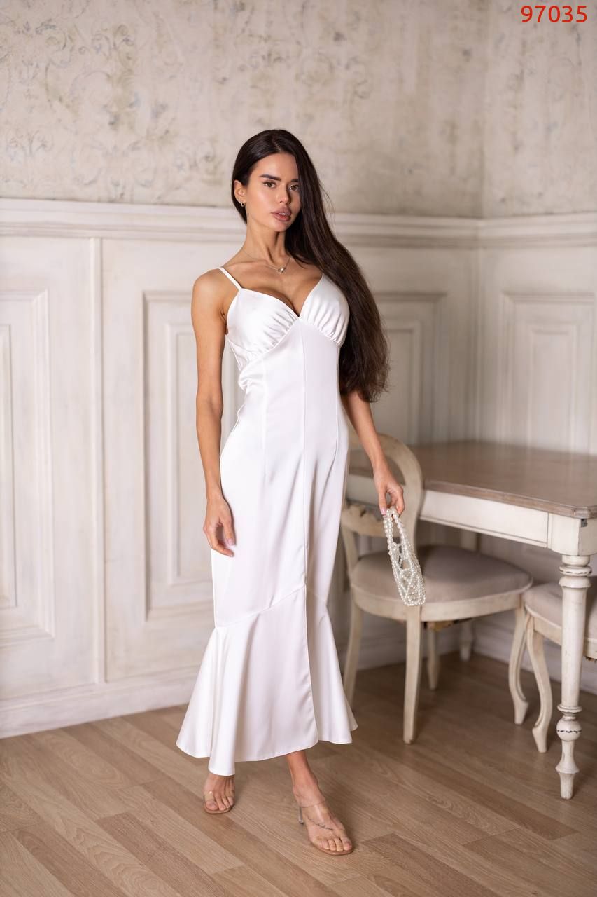 Відкрийте для себе витончену жіночність з нашою сукнею із щільного шовку. Лаконічний крій візуально витягує силует, а тонкі регульовані бретелі підкреслюють витонченість плечей. Драпірований ліф створює ідеальне прилягання та красиво формує лінію декольте.