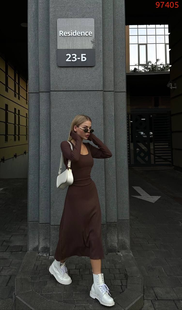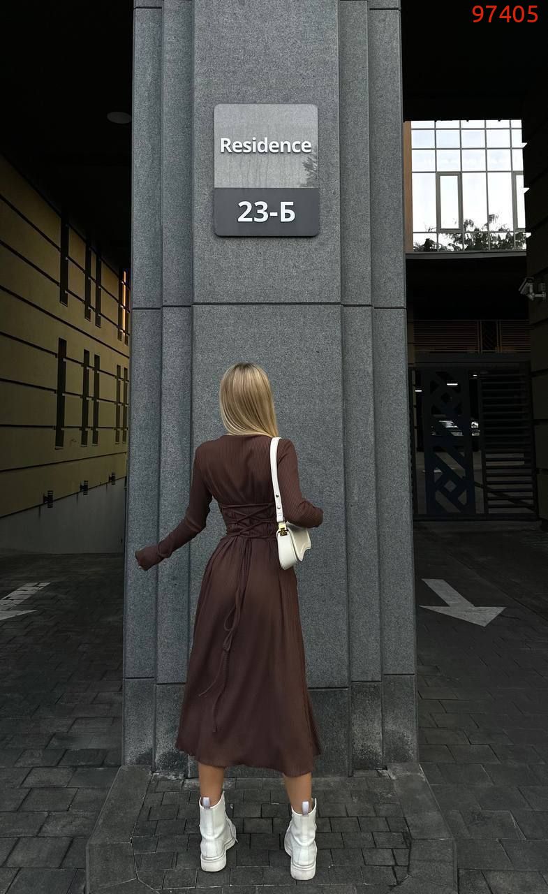 Трикотажна сукня - річ, без якого не обійдется модниця в цьому сезонні. Ми вам пропонуємо ось такий варіант довжини міді, на спині має шнурівку ,завдяки чому, гарно сяде на будь-яку фігурку. З такою сукнею легко створити витончений і жіночий образ