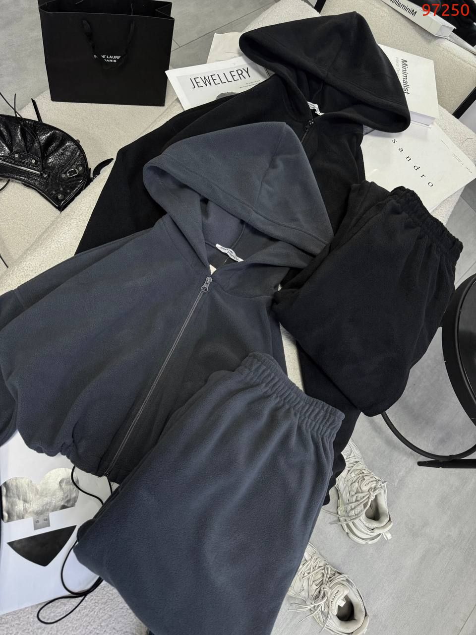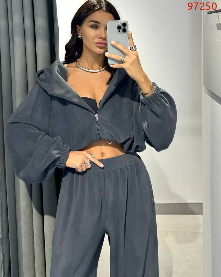 Штани та кофта на затяжках внизу.